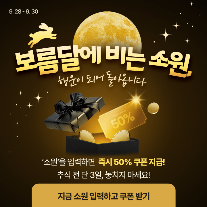 ★이벤트 페이지에 ‘소원’을 적으면 즉시 50%할인 쿠폰 증정!★