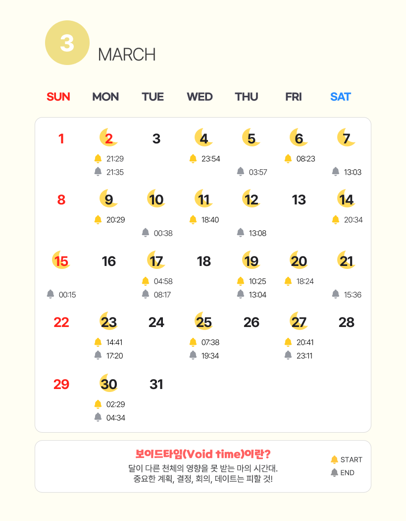 2026년 3월 보이드 타임 캘린더