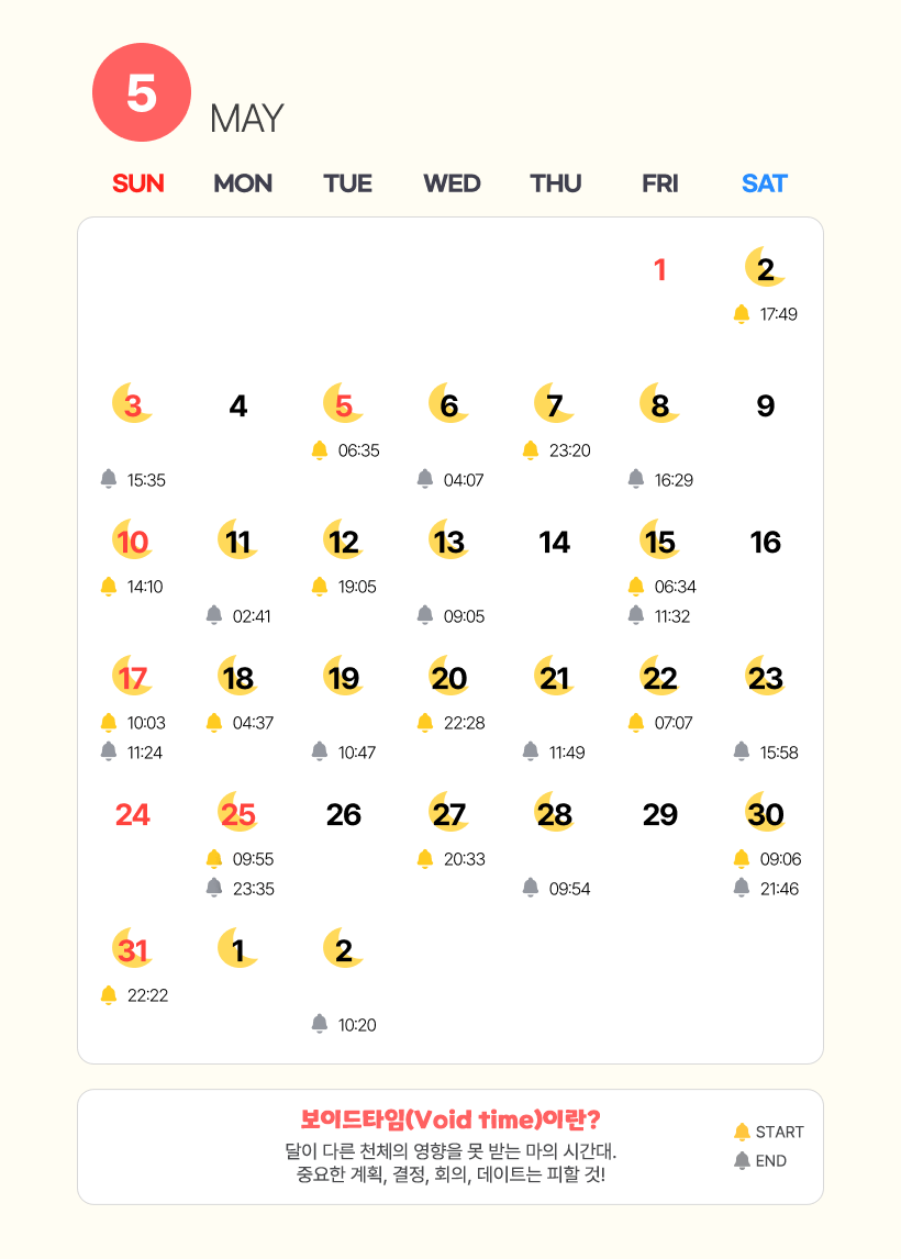 운을 읽는 똑똑한 습관, 보이드타임 캘린더를 확인해보세요!
