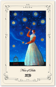 물병자리의 타로카드는 '코인9'입니다. '코인9' 카드는 성공과 번영을 상징하는 카드입니다.