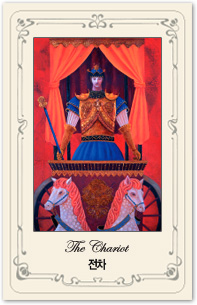 사자자리의 타로카드는 '전차' 입니다. 강한 의지와 에너지로 전진하는 카드입니다.