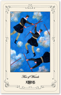 전갈자리의 타로카드는 ' 지팡이 5' 입니다. 활동성과 활기참을 나타내는 카드입니다. 집에서 가만히 생각만 한다고 변하는 것은 없습니다.