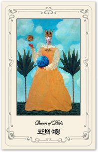 게자리의 타로카드는 '코안의 여왕'입니다. 두 발을 땅에 딛고 생각하는 여왕의 카드입니다.