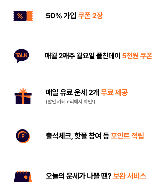매일 유료 운세 2개 무료 제공 (할인 카테고리에서 확인!)